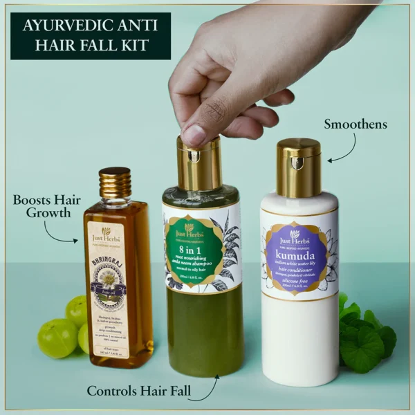 The Ayurvedic Anti Hair Fall Kit from Just Herbs is a unique trio of crucial, health-boosting hair products that prevent and treat hair breakage or fallout. These products give rise to astounding improvements in dry, lacklustre or damaged hair. Our trio consists of: • Bhringraj Hair Oil (100ml): This hair oil utilizes antediluvian healing herbs…